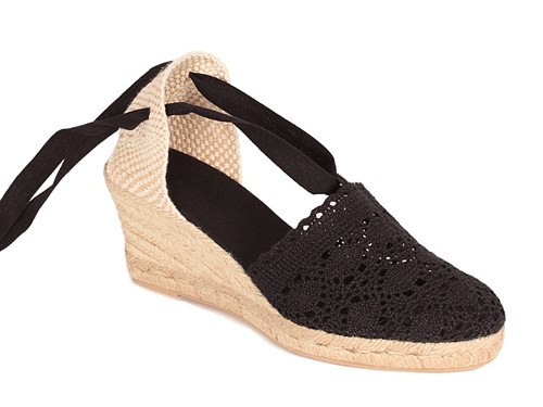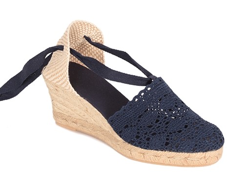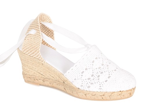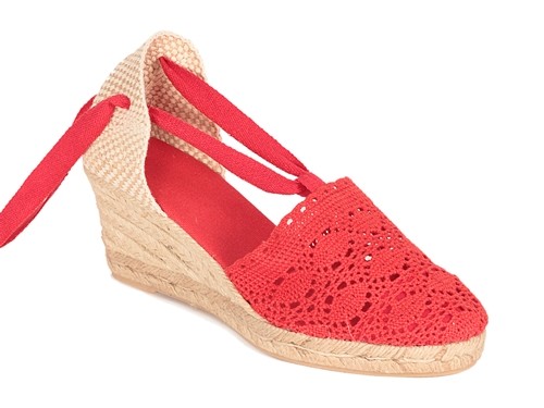 Alpargata de cuña media de ganchillo con cintas para mujer