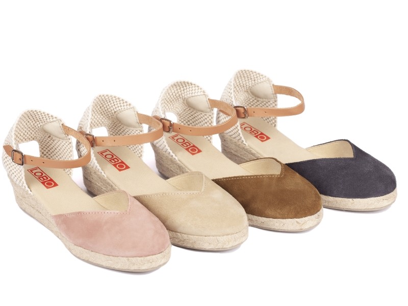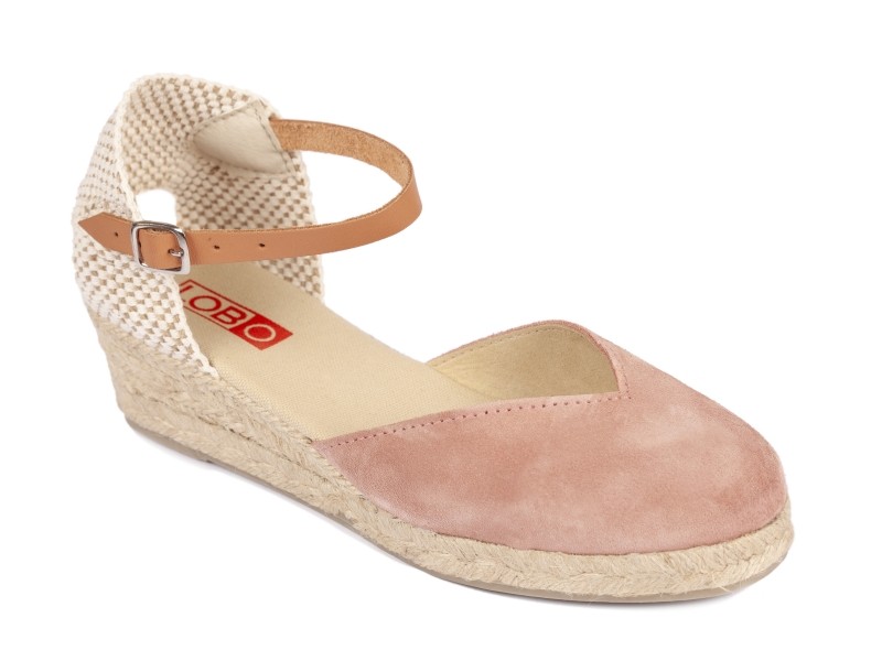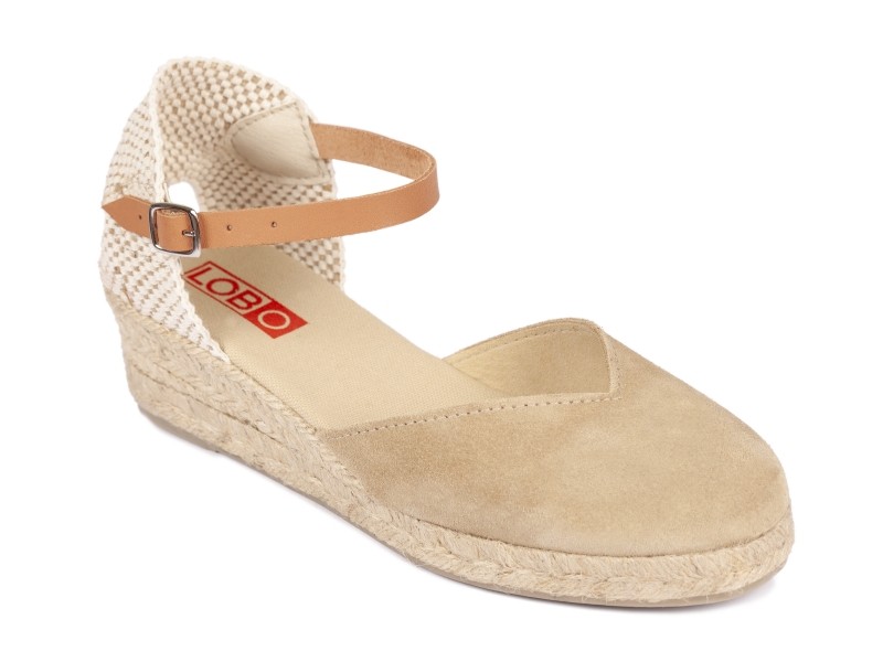 Alpargata de yute de SERRAJE de cuña media con empeine escotado en V y pulsera de piel al tobillo.