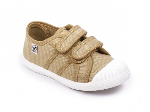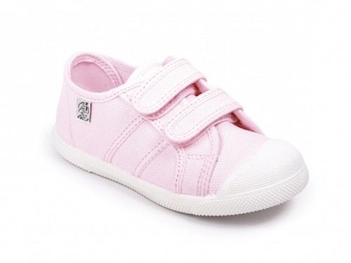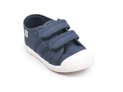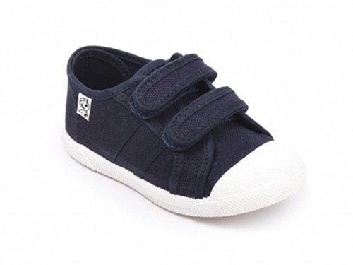 Zapatilla deportiva tipo bamba de lona con doble cierre de velcro y puntera de goma. Ideal como primera deportiva y para la guardería (sin cordones).