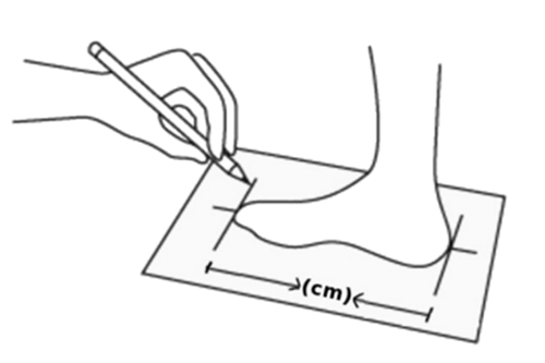 4. Mide ambos pies ya que es muy común que uno sea un poco más largo que el otro. Ten en cuenta la medida más grande de las dos.